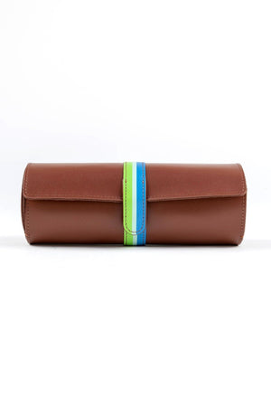 Stay organized and keep your valuable timepieces protected while traveling with the Lookout Watch Case from Ivy Cove. The rich Brown leather with signature Ivy Cove stripe complements any travel accessory from our leather collection. And the minimal design is easy to pack and looks beautiful in any space. The durable leather will be there as you create memories for many trips around the world and back.
