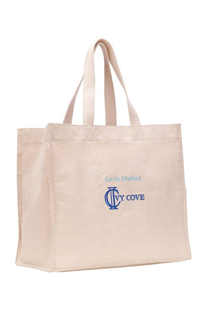 The Marché Tote is a durable, easy to carry bag that's great for all your shopping needs. Made of simple white cotton canvas with our signature blue logo. The tote has adorbale multiple interior pockets to keep all your dry goods organized.