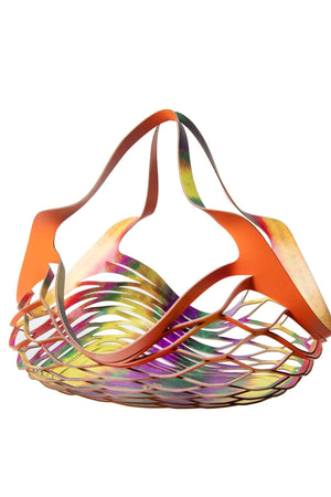The engineered honeycomb leather design of the Market Tote transforms from an easy to store flat leather piece to a unique shopping tote, perfect for the market, the beach or just about anywhere. This tote is reversible featuring the signature Step Up Orange with their logo on one side and vibrant multicolor hues on the other, making every trip to the market a fashionable one.
