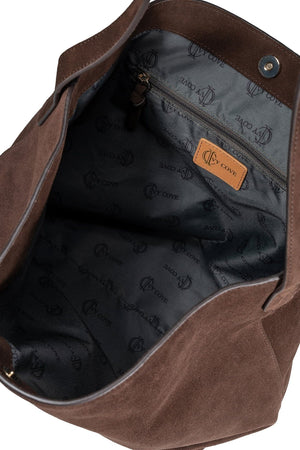 The spacious interior provides room for daily essentials, while the shoulder strap ensures easy, comfortable carry throughout the day. Double construction adds structure and contrast, highlighting the rich texture of the suede and reinforcing the bag’s timeless appeal.