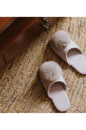Who says home has to be homely? Add some glam to your everyday at home look with the Pom Pom slippers in luxurious heather grey. Made of a wool and polyester blend and adorned with rabbit fur Poms, these slippers will make you feel like a Hollywood siren even when you’re just lounging around the house or on a Zoom call. Treat your feet and take comfy-chic to a whole new level.