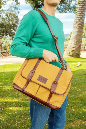 The Acadia Messenger Bag is tailored for today's savvy business professional seeking seamless elegance and everyday practicality. This bag effortlessly blends timeless design with functional efficiency. Crafted from premium 100% cotton canvas and adorned with ethically sourced leather trim, it offers both durability and style. Its adjustable padded strap ensures comfort, while the interior pockets cater to all your organizational needs. Elevate your modern-day business pursuits with the Acadia Messenger Bag.