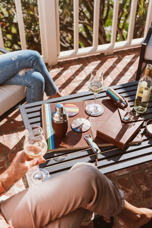 A memorable dinner is made so as much by the food served as it is by the company around the table and the décor of the room. You’ve got the menu and the company under control, allow Ivy Cove to handle the table décor. With the Northfork Placemat on your table, guests will be won over from the time they take their seats. Made of the brand’s signature leather the Northfork Placemats are backed with a substantial padding, whipstitched along the edge, and lined in handwrapped jute. Each mat is finished off with the Ivy Cove Cobalt and Green stripe branding detail. Bon Appetit!