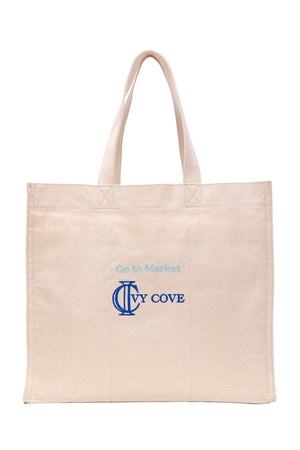 The Marché Tote is a durable, easy to carry bag that's great for all your shopping needs. Made of simple white cotton canvas with our signature blue logo. The tote has adorbale multiple interior pockets to keep all your dry goods organized.
