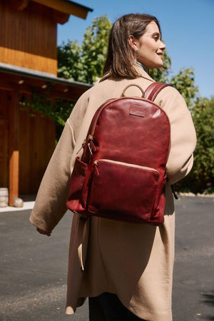 Classic design gets elevated with artisan craftsmanship in the Gobi Backpack by Ivy Cove. The elegant design is constructed of 100% durable and responsibly sourced leather, and features an interior pocket, exterior zip pocket, and two exterior side pockets. The bag also has dual adjustable straps, a top handle, and a two-way zipper for convenience. It is spacious enough for all of your school or work needs, and also makes for a great weekend and travel bag