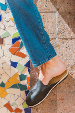 The footbed of these shoes are made from 100% pre-consumer cutting room leather scraps that come with the manufacturing of leather goods. These leftover materials are usually sent to landfills but are now being processed and upcycled into beautiful designs that are comfortable, durable, and sustainable. This practice of conscious consumption using a closed loop production system supports our planet and is one of the most conscious ways of sourcing leather.