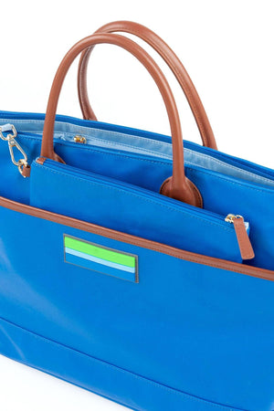 Few bags billed as doing double duty deliver, but the Oceanliner Diaper Tote by Ivy Cove is definitely one of them. Stylishly constructed from super durable coated cotton with Brown leather trimming for serious fashion quotient, the shape is enough classic tote to appear as a bag and enough diaper bag to be functional. The matching pouch and detachable leather shoulder strap takes the functionality to an even higher level. This is one diaper bag that will last well beyond the diaper phase of your life!