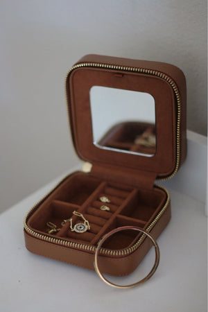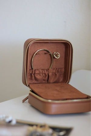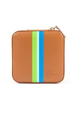 The perfect size for a weekend or weeks long getaway, the Keeper Jewelry Box is made to store all your valuables from the most precious rings to the chunkiest statement pieces. Made of premium and responsibly sourced leather, the structured design is easy to pack and sits beautifully on any counter, even your own when you are not traveling. The Saddle leather with contrasting Ivy Cove stripe will also coordinate with any of the leather travel pieces from the collection.