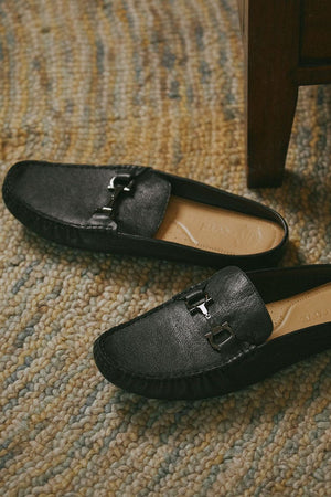 Get around town in ultimate style with the Manhattan Driving Mule. Designed with luxury and comfort in mind, these slip-on shoes will elevate your entire look whether you are out running errands, on a romantic date, or just hanging out by the dock. The pair is constructed of responsibly sourced leather, lined with lambskin, and detailed with metal hardware.