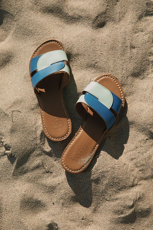 A bit deco and a bit retro, these Half Moon sandals will be the chicest addition to any wardrobe. The two-tone Cobalt and Aqua is a classic color combination that will add just the right amount of style to any outfit. The sandals are constructed with tanned leather on the upper, a responsibly sourced footbed, and rubber on the outsole for comfort, support, and durability. Wear these on your daily errands and even to the office on those laid-back days. The chic design even works for casual weddings and receptions. Pair with a dreamy sundress or a linen suit ensemble for an effortless look.