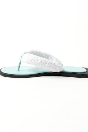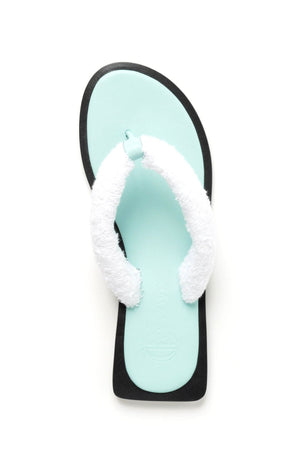 Step into bliss with the Sanctuary Sandal in either Ivy Cove Cobalt or White. Bring all the feelings of zen and tranquility that you experience at the spa into your home with these leather and cotton terry sandals. This uber on-trend design is perfect for home or for running around town and we love them for wearing out after a pedi or for sunning by the pool. Made from soft and plush terry fabric and set into a responsibly sourced leather footbed with a rubber outsole for comfort, support, and durability.